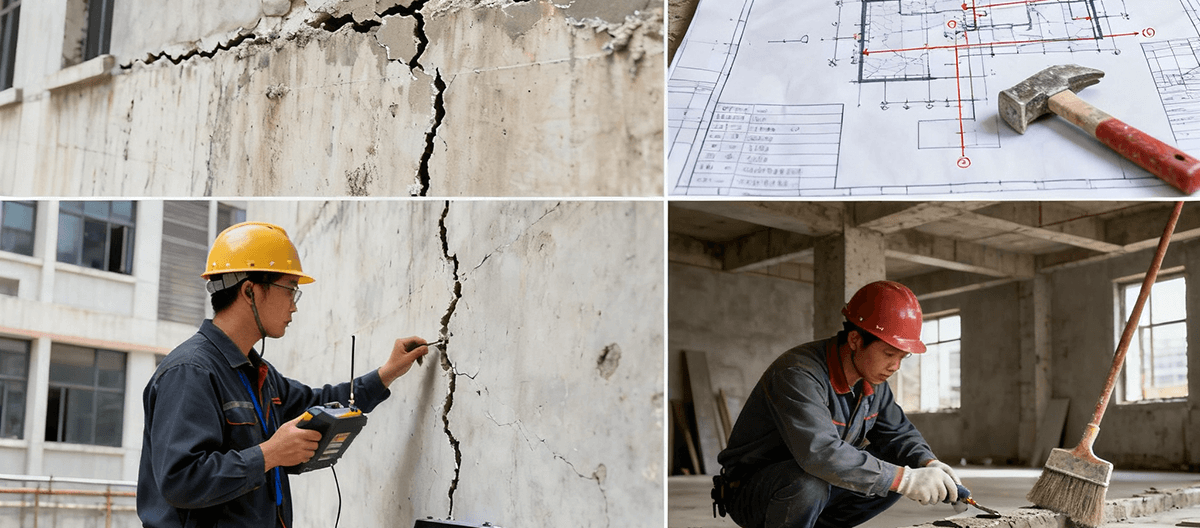 通过专业仪器检测建筑结构裂缝、墙体渗漏、钢筋腐蚀、外墙脱落等病害,出具详细诊断报告,定制“检测→方案→修复→验收”全流程治理方案,修复建筑缺陷,延长建筑使用寿命,保障居住与使用安全。